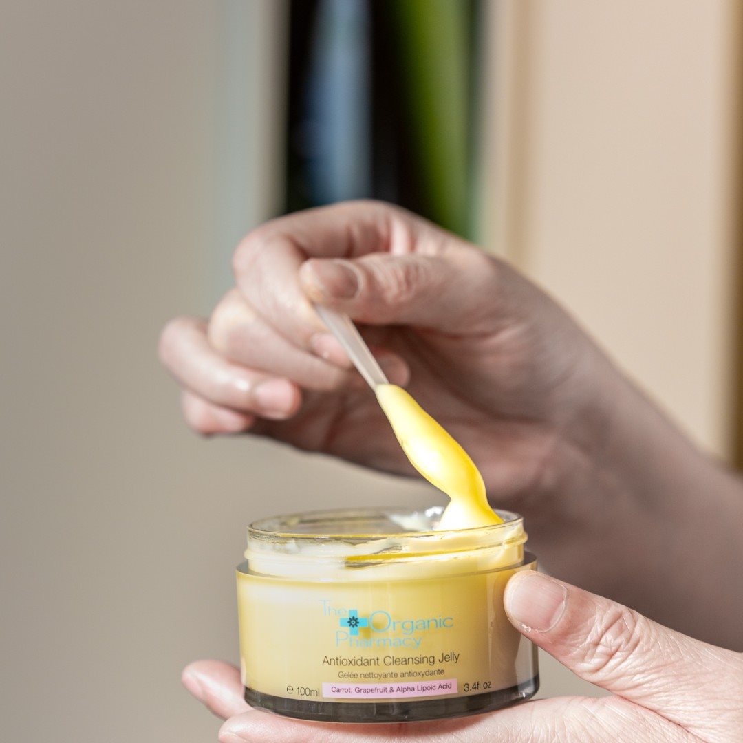 The Antioxidant Cleansing Jelly by The Organic Pharmacy is a lightweight, super-refreshing gel-to-milk cleanser that offers a delightful cleansing experience. Enriched with antioxidant-rich Grapefruit and Lavender extracts, this cleanser effectively and gently purifies the skin, leaving it radiant and fresh-faced. Its unique formula transforms from a light gel to a nourishing milk, ensuring a thorough cleanse without stripping the skin of its natural moisture.